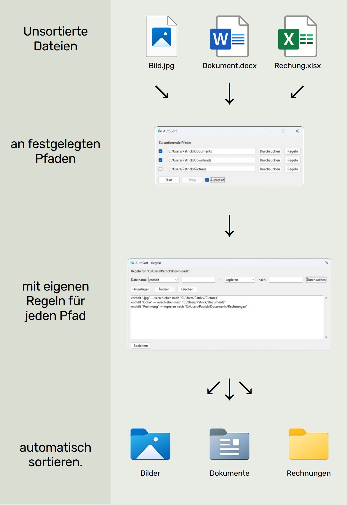 Mit AutoSort werden all deine Dateien automatisch sortiert – egal wo sie gespeichert sind oder um welche Dateitypen es sich handelt.